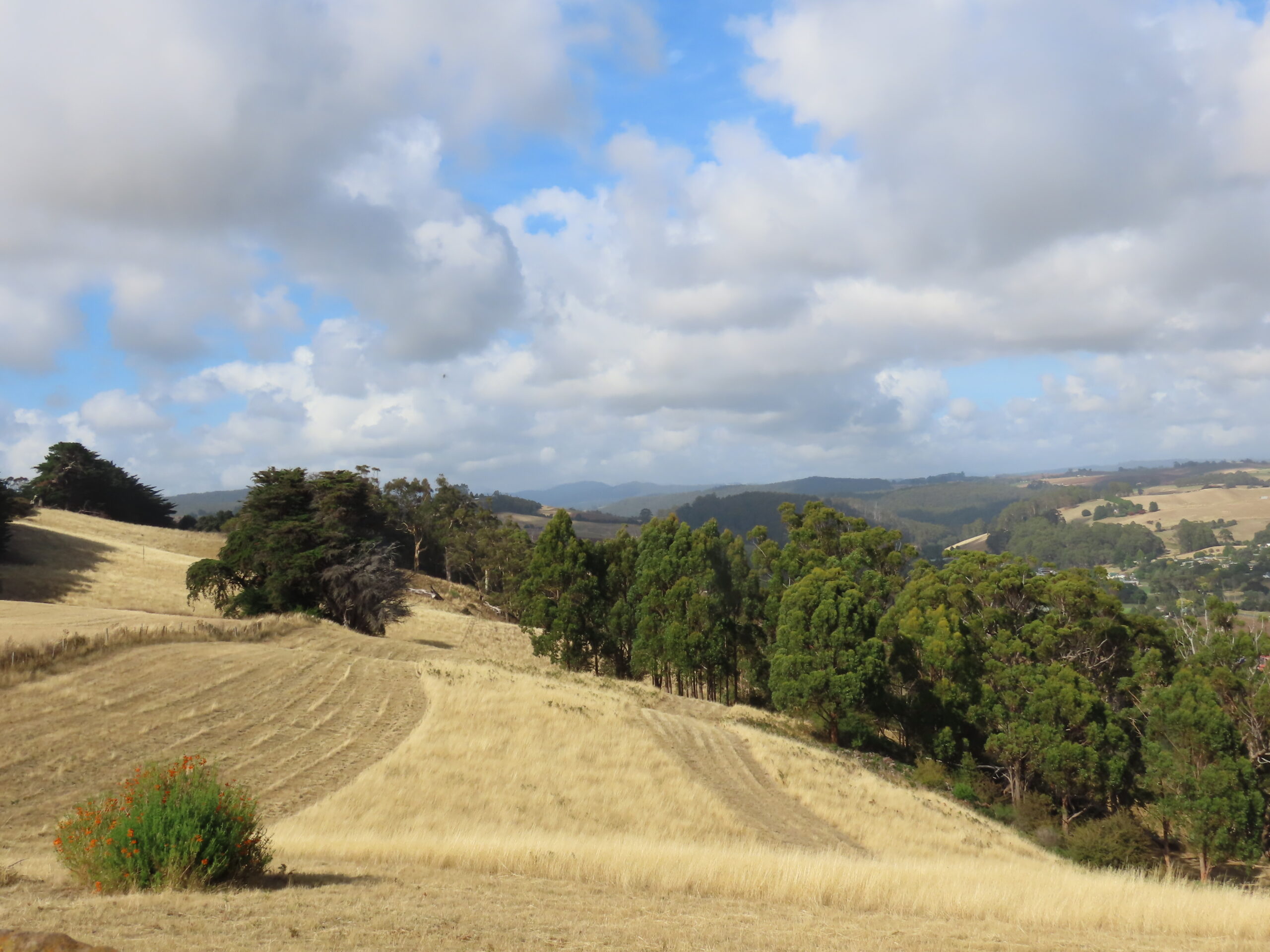 What I find especially compelling is the way the farms seem to coexist with the surrounding environment. Patches of native bushland are often left untouched, providing shelter for wildlife and a reminder of what the land once looked like before it was cultivated. It is not uncommon to see a line of tall trees acting as a windbreak, as shown in our photos; their presence is both practical and beautiful.