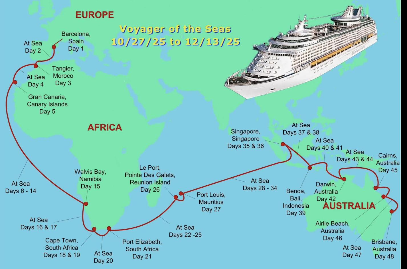 Tom looked up some facts about today’s 47-night cruise(s) that surprised us.