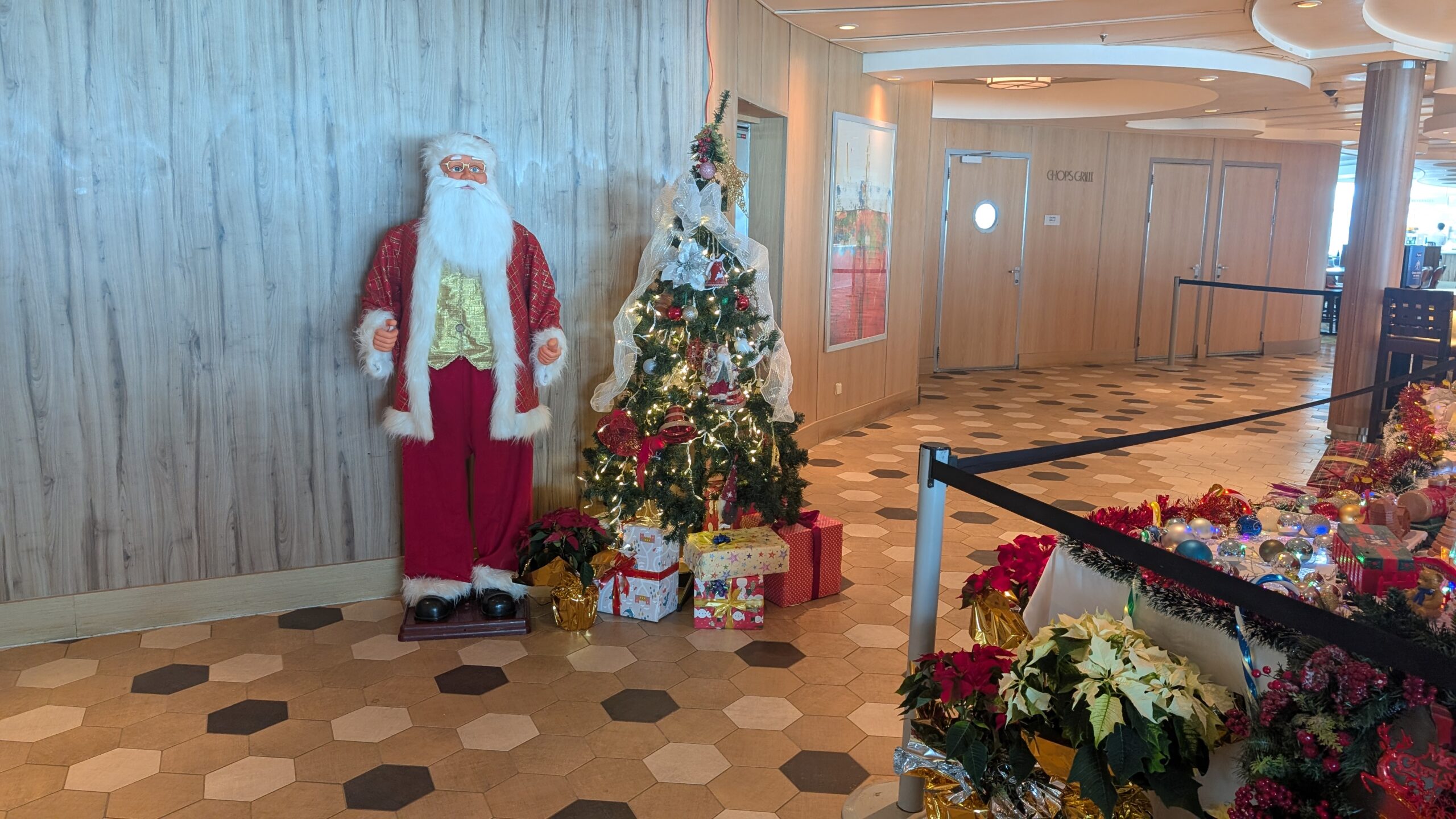 This third leg of the cruise is noticeably busier, packed, really, with about 30% more passengers than the earlier two segments. I’d estimate that roughly 75% of them are Australian, with the remainder traveling from a mix of other countries. As far as we can tell, there are only a handful of Americans aboard. With these increased numbers, every venue feels hotter and louder, and the previously quiet corners around the ship now bustle with activity. We’ve also seen a significant increase in families with children, many traveling for the Christmas holidays, and quite a few college-age passengers filling the pool deck and the restaurants.